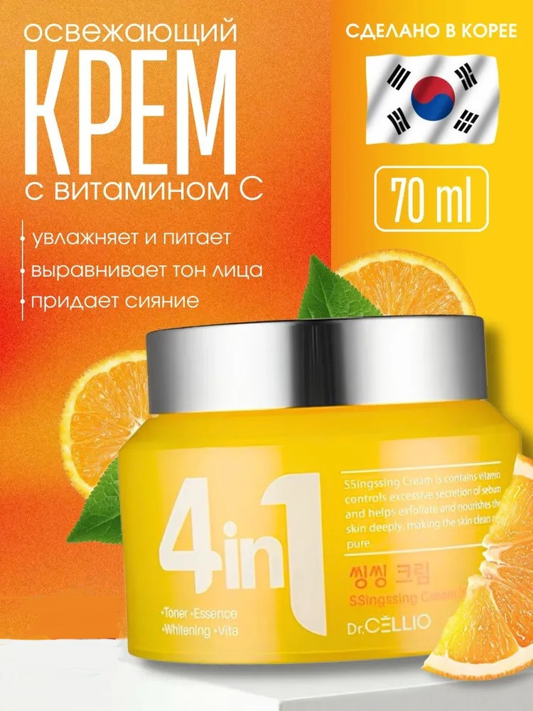 Dr. Cellio Освежающий крем для лица с витамином С и гиалуроновой кислотой, против пигментации «4 in 1 Ssingssing Vita Cream»