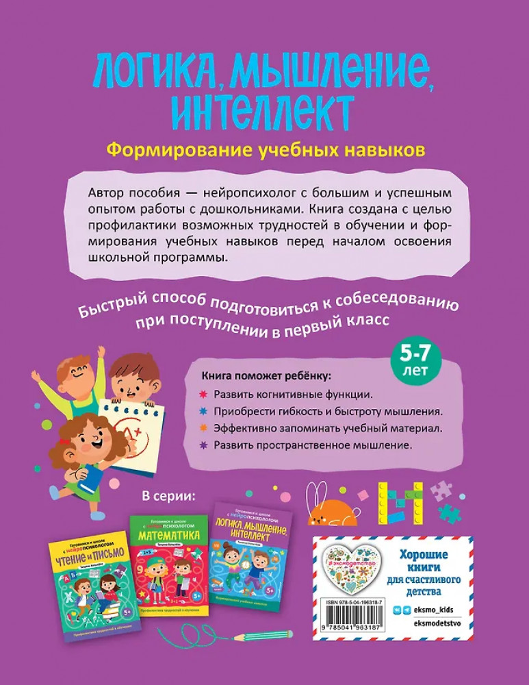 💳 Оплатить за товар можно при получении 🇰🇿 Есть бесплатная доставка по Казахстану от 1 дня 🎁 Копите бонусы с каждой покупки Серия: Готовимся к школе с нейропсихологом В комплект из трех развивашек для детей 5, 6, 7 лет входят 3 книги по обучению чтению, счету и логике. Профилактика дисграфии, дислексии, дискалькулии. Развитие мышления, внимания, самоорганизации, мелкой моторики, формирование позитивного отношения к учебе. Разработаны практикующим нейропсихологом, который каждый день помогает малышам учиться в игре. Подойдет родителям, педагогам и воспитателям для ребенка, который неусидчив, часто отвлекается, имеет проблемы с памятью, вниманием, пространственным мышлением. Автор уделяет особое внимание методам преодоления нейропсихологических проблем, которые могут затруднять обучение. |