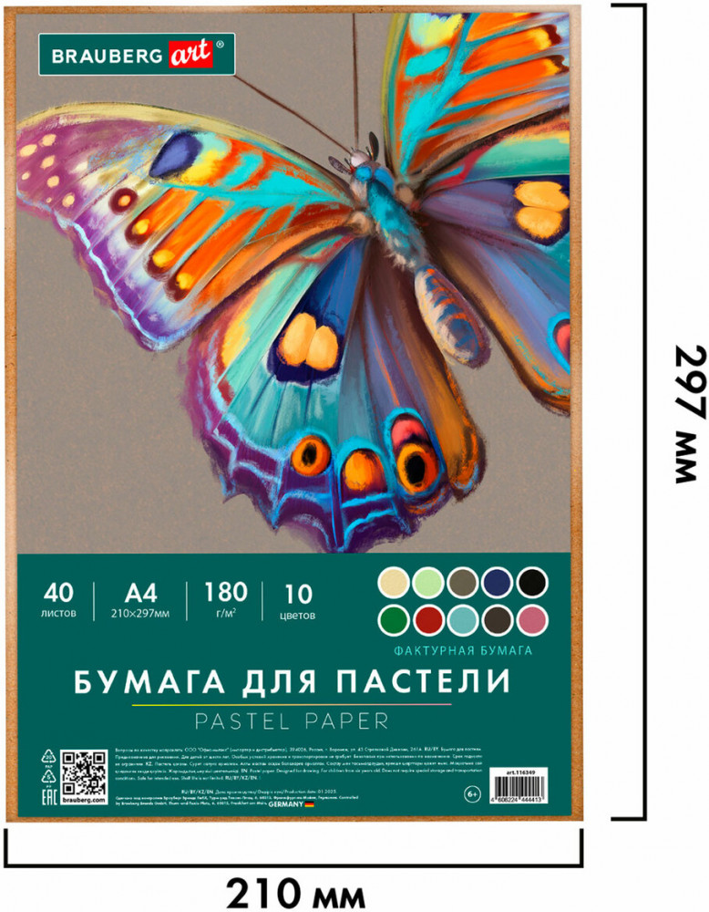 💳 Оплатить за товар можно при получении 🇰🇿 Есть бесплатная доставка по Казахстану от 1 дня 🎁 Копите бонусы с каждой покупки Бумага для пастели Brauberg предназначена для различных техник рисования. Позволяет создавать мягкие и детализированные текстуры на картинах, а при более плотной зарисовке пастель выглядит ярко и сочно. Окрашенная в массе бумага в 10 популярных цветах плотностью 180 г/м2 гарантирует превосходное сохранение работ. Еще одним преимуществом является наличие рельефной фактуры, что не маловажно для создания рисунка пастелью. Упаковка сделана из микрогофрокартона, что позволит сохранить ваши рисунки во время хранения и транспортировки. В ней также удобно хранить готовые работы. Внутренний блок содержит 40 листов формата А4 (210×297 мм). Бумага для пастели Brauberg незаменима как для начинающих художников, так и для профессионалов. Приобретайте товары для творчества и создавайте неповторимые работы! |