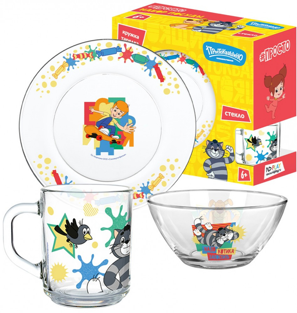 Подарочная посуда из стекла с изображением героев «Простоквашино» — отличный выбор для детского питания и кормления малышей. Этот красивый набор включает тарелку диаметром 19,5 см, салатник на 13 см и кружку объёмом 230 мл. Каждый элемент выполнен из качественного стекла, что обеспечивает долговечность и безопасность в использовании. Подходит для праздничного стола, а также для повседневного применения в детской столовой. Набор посуды идеально подходит для малышей и детей любого возраста, являясь милым и практичным подарком для мальчика или девочки. Использование набора облегчает процесс подачи прикорма и еды, позволяя сервировать стол ярко и красиво. Изделия изготовлены по официальной лицензии, что гарантирует высокое качество и надежность.