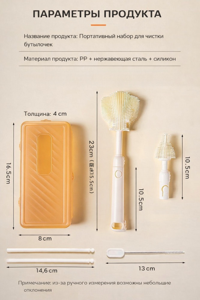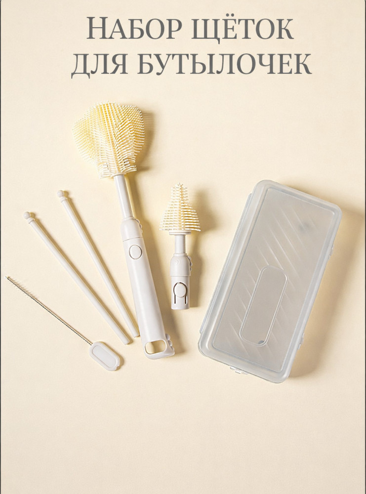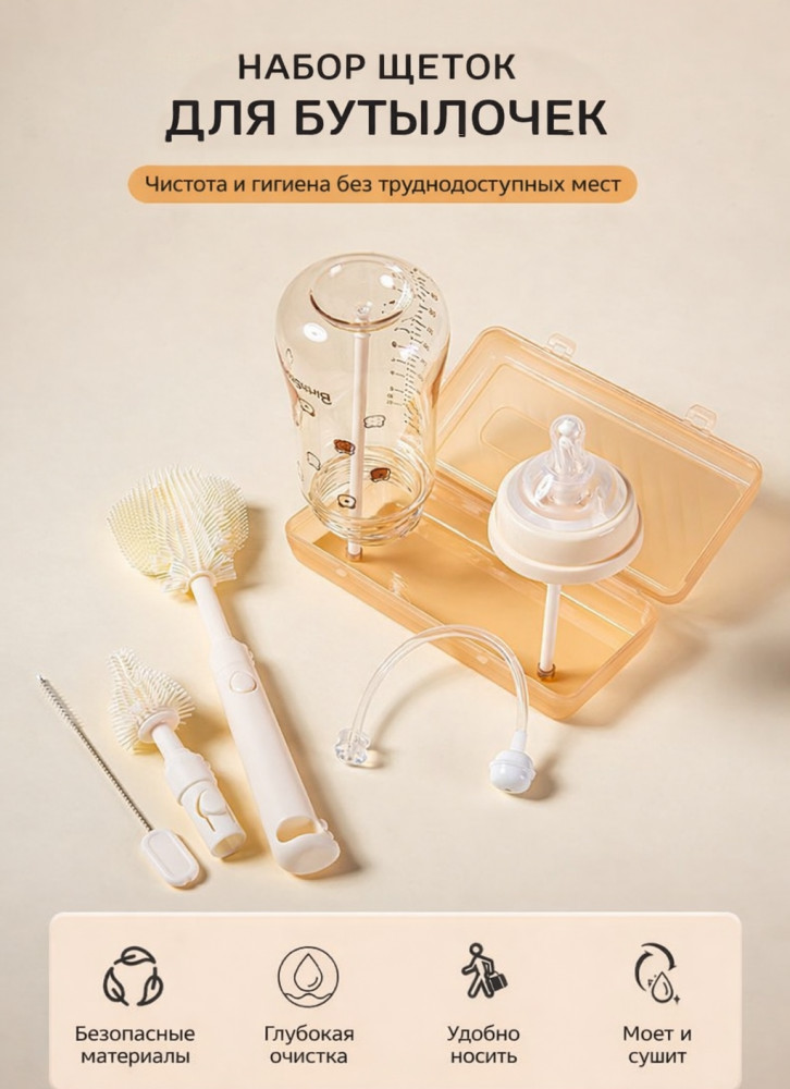 💳 Оплатить за товар можно при получении 🇰🇿 Есть бесплатная доставка по Казахстану от 1 дня 🎁 Копите бонусы с каждой покупки В наборе для мытья и сушки детских бутылочек и сосок имеется: силиконовый ершик для бутылок, силиконовый мини-ершик для сосок, щетка для мытья трубочек, складная сушилка для баночек, 2 ножки для сушки бутылочек и поильников. Щеточки ершика для мытья бутылок выполнены из пищевого силикона, самого безопасного материала для малышей. Вам больше не нужно использовать обычные губки и щетки для мытья бутылочек. |