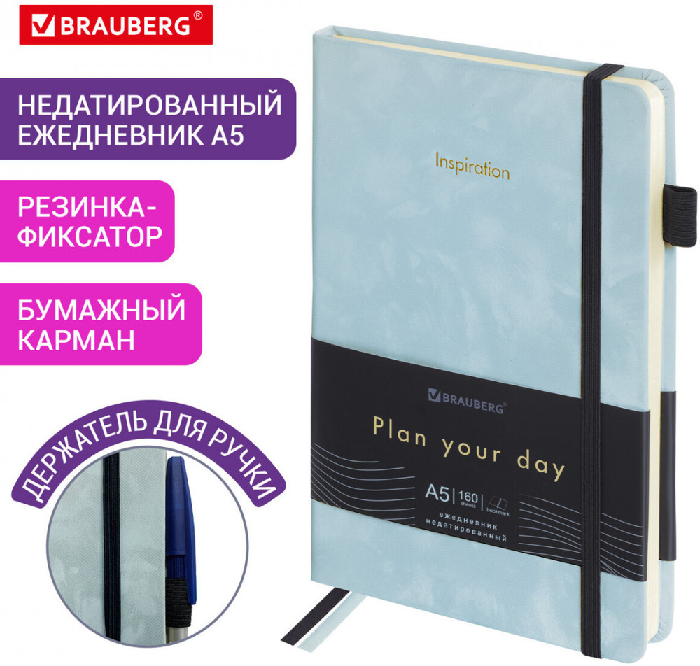 💳 Оплатить за товар можно при получении 🇰🇿 Есть бесплатная доставка по Казахстану от 1 дня 🎁 Копите бонусы с каждой покупки Недатированный ежедневник Brauberg «Velvet» выполнен в оригинальном стиле. Подойдет каждому современному человеку для ведения различного рода записей. Внутренний блок включает 160 листов кремовой бумаги плотностью 70 г/м2. Каждая страничка имеет перфорированный угол. Благодаря стандартному формату А5 (138×213 мм) ежедневник удобно использовать как в офисе, так и на выездных деловых встречах. |
