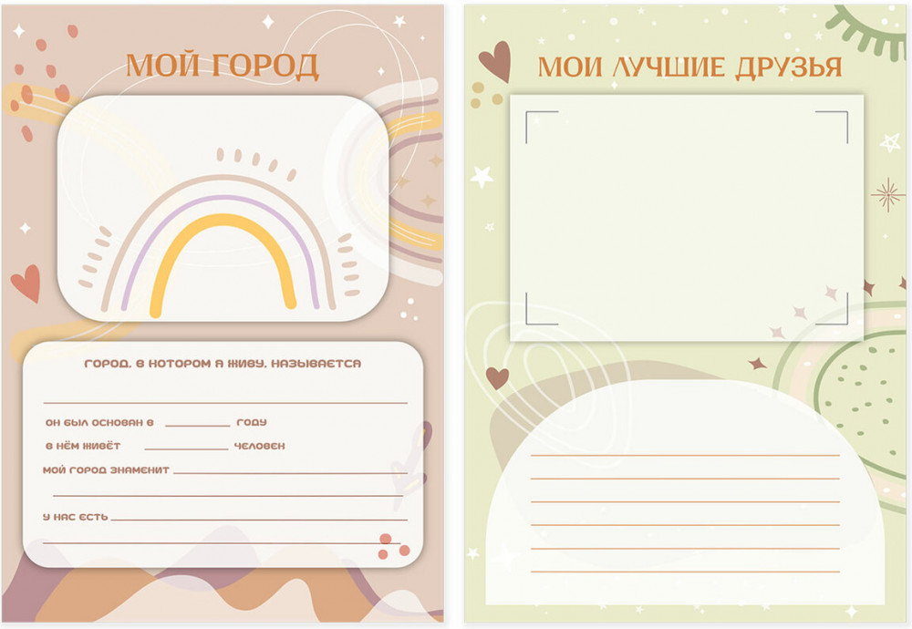 1 раздел — «Мой мир», который содержит темы: Это я, Личные данные, Моя семья, Режим дня, Мой город, Мои лучшие друзья, Мои увлечения, Моя мечта, Мои питомцы.