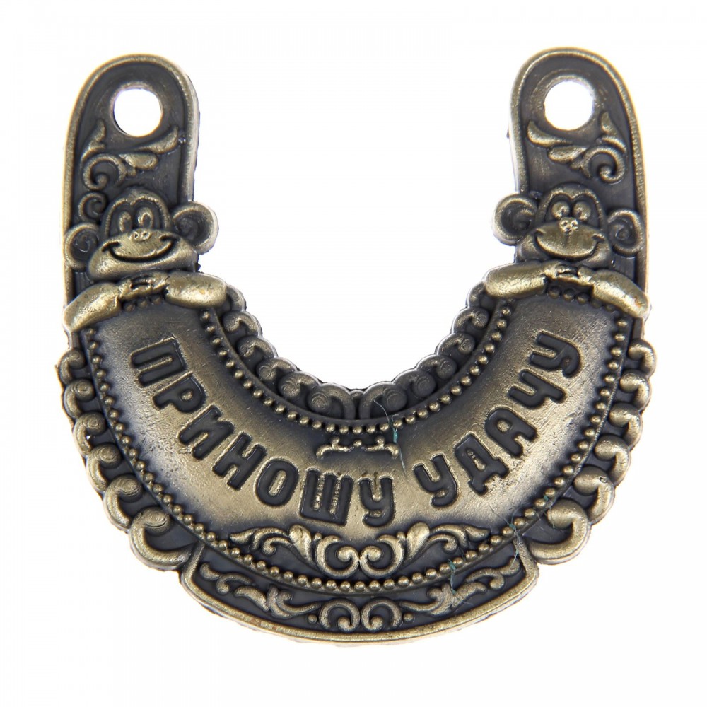 Подкова «Приношу удачу» с удивительным новогодним дизайном изготовлена из надёжного и долговечного материала — металла. На подкову запрыгнула обезьянка — хранительница наступающего 2016 года, которая принесёт множество чудесных моментов в жизнь своего обладателя.