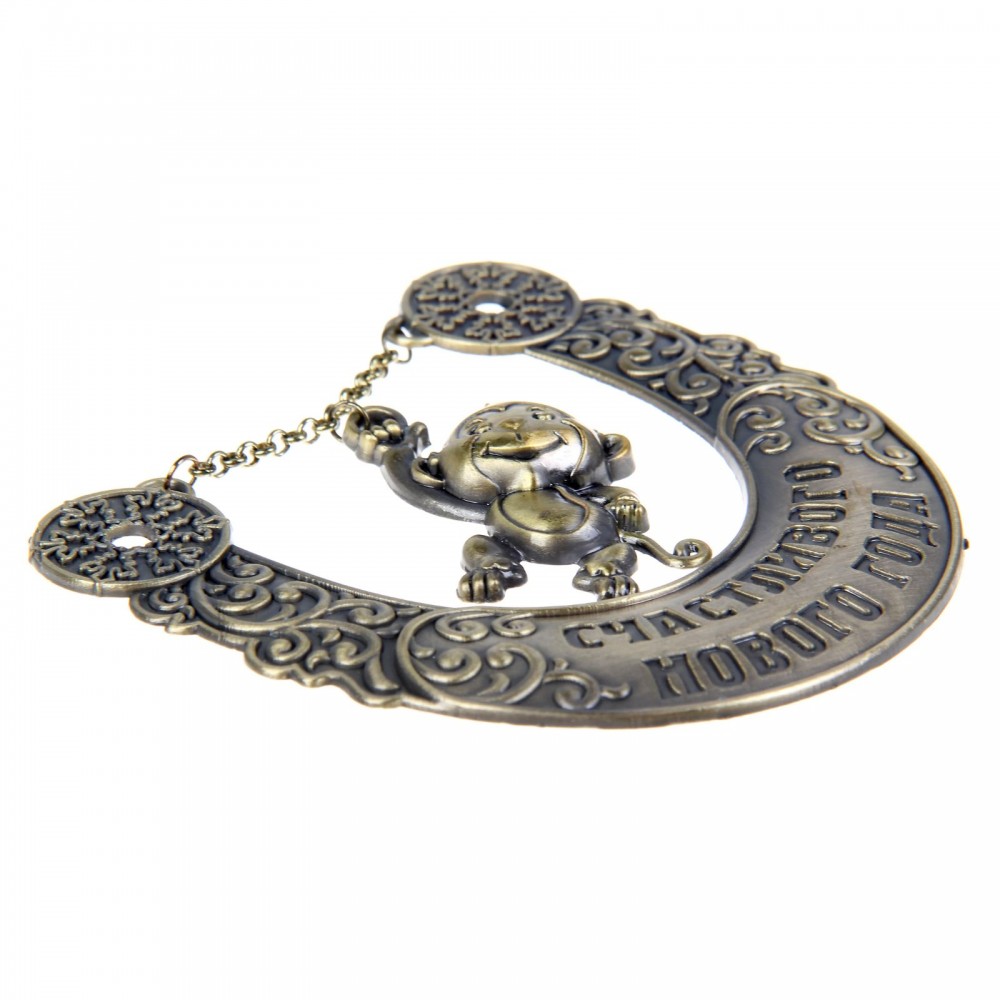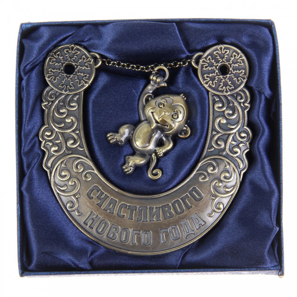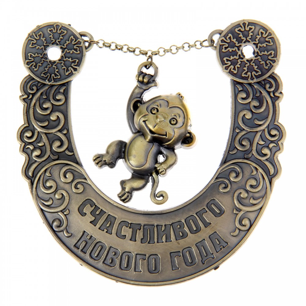Подкова «Счастливого нового года» с удивительным новогодним дизайном изготовлена из надёжного и долговечного материала — металла. На подкову запрыгнула обезьянка Ёсик — хранитель наступающего 2016 года. Очаровательный Ёсик — самый младший среди волшебных обезьянок, неуклюжий, но удивительно милый малыш. По-детски трогательный и доверчивый символ года хотел бы подружиться с целым светом, но врождённая застенчивость часто мешает ему сделать первый шаг к дружбе. Обезьянки очень любят Ёсика за его отзывчивость и доброту.