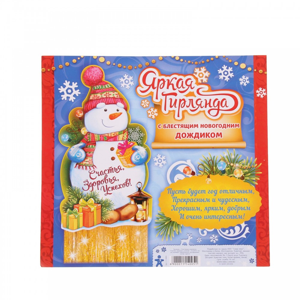 Гирлянда новогодняя с блестящим дождиком «Счастья, здоровья, успехов!»В данный момент этот товар отсутствует в продаже. Возможно, у нас найдется аналогичный или похожий товар здесь. Гирлянда новогодняя с блестящим дождиком «Счастья, здоровья, успехов!» для праздничного оформления помещения создаст неповторимое настроение. Оригинальный авторский дизайн, яркость печати и необычная форма сделают внутренний антураж любой комнаты |