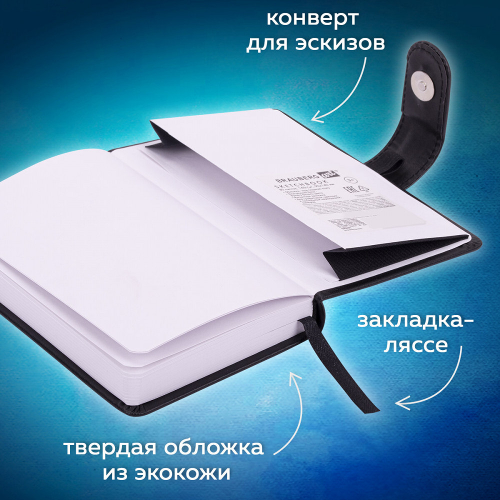 Скетчбук BRAUBERG ART «CLASSIC» для эскизов и графики. Внутренний блок — специальная художественная бумага белого цвета с гладкой фактурой. Предназначен для работы с широким спектром графических материалов (уголь, соусы, карандаши и прочие).