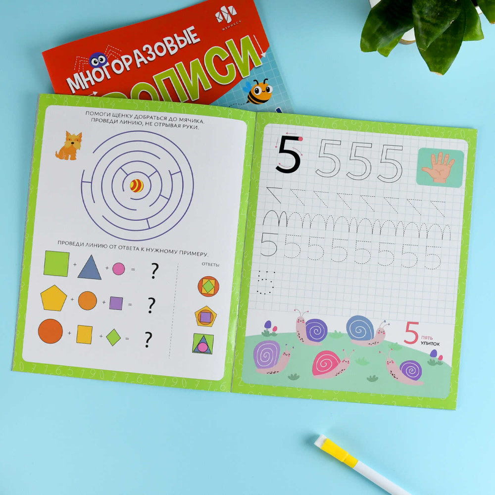 Феникс + Многоразовые прописи с картинками и заданиями с маркером в комплекте «Цифры и счет»-25% +9
