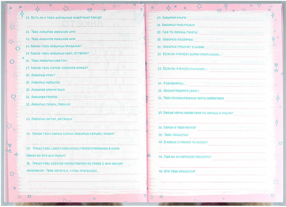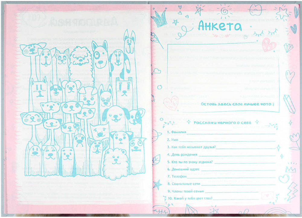 Дневник на резинкеДневник в клеткуФитнес дневникБлокнот с замкомДневник с замкомДневник для записейДневник для путешествийДневник в точкуЛичный дневник в твёрдой обложкеАнкета с опросникомАнкета с тестамиДневник-анкета для друзейАнкета для друзейАнкета-дневникДневник с кармашкомДневник для девочекДневник читательскийДневник с датами