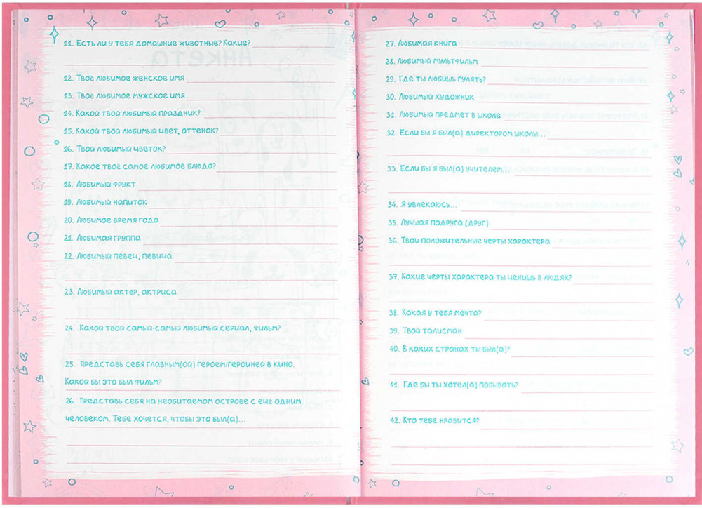 Дневник на резинкеДневник в клеткуФитнес дневникБлокнот с замкомДневник с замкомДневник для записейДневник для путешествийДневник в точкуЛичный дневник в твёрдой обложкеАнкета с опросникомАнкета с тестамиДневник-анкета для друзейАнкета для друзейАнкета-дневникДневник с кармашкомДневник для девочекДневник читательскийДневник с датами