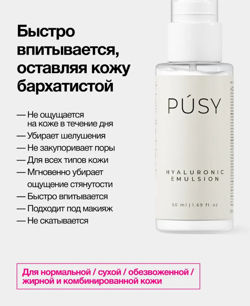 Pusy Увлажняющая эмульсия для лица с гиалуроновой кислотой «Hyaluronic Emulsion»