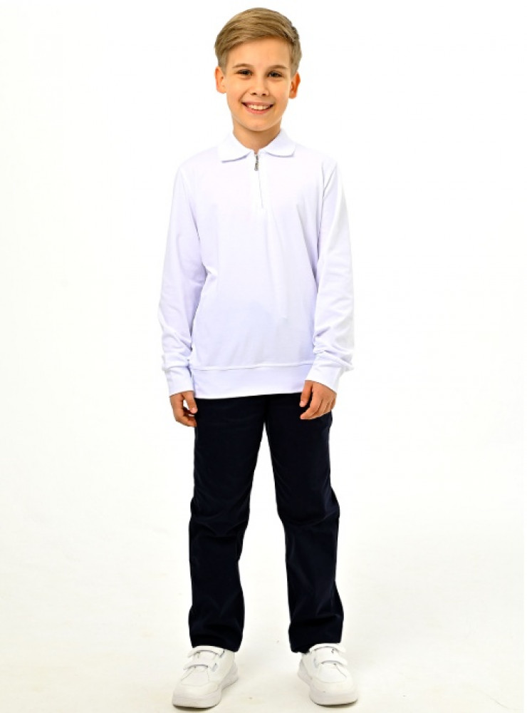 Белый школьный лонгслив-поло для мальчика — практичная и аккуратная модель для повседневной носки и школы. Модель выполнена из плотного трикотажа пике, который хорошо держит форму, приятен к телу и устойчив к частым стиркам. Длинные рукава с манжетами обеспечивают комфорт в прохладную погоду. Классический отложной воротник и застёжка на молнии придают изделию аккуратный, опрятный вид и делают лонгслив удобным в надевании. Однотонный белый цвет легко сочетается с брюками, джинсами и школьной формой. Отличный вариант для школы, мероприятий и повседневной носки.