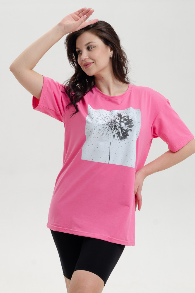 Футболка женская из кулирки с лайкрой качества пенье в большой цветовой гамме. Футболка свободного кроя, со спущенной линией плеча. Идеально подойдет для дома, прогулок и отдыха.