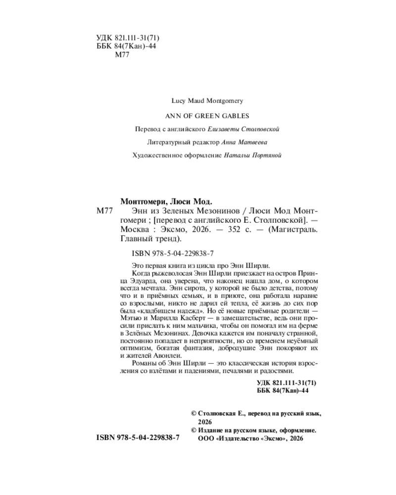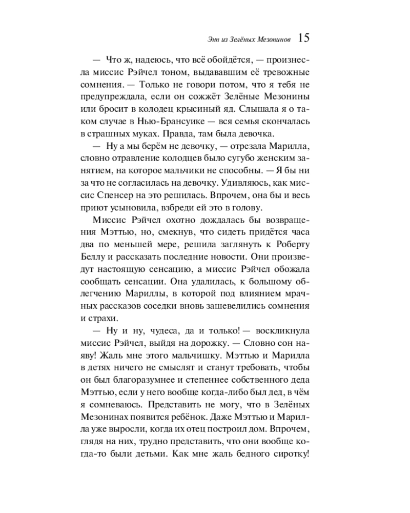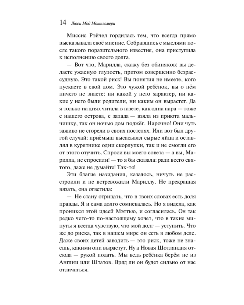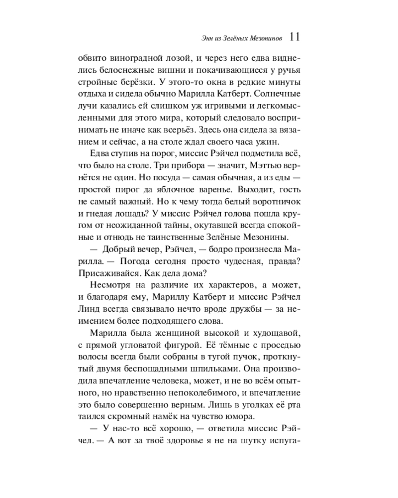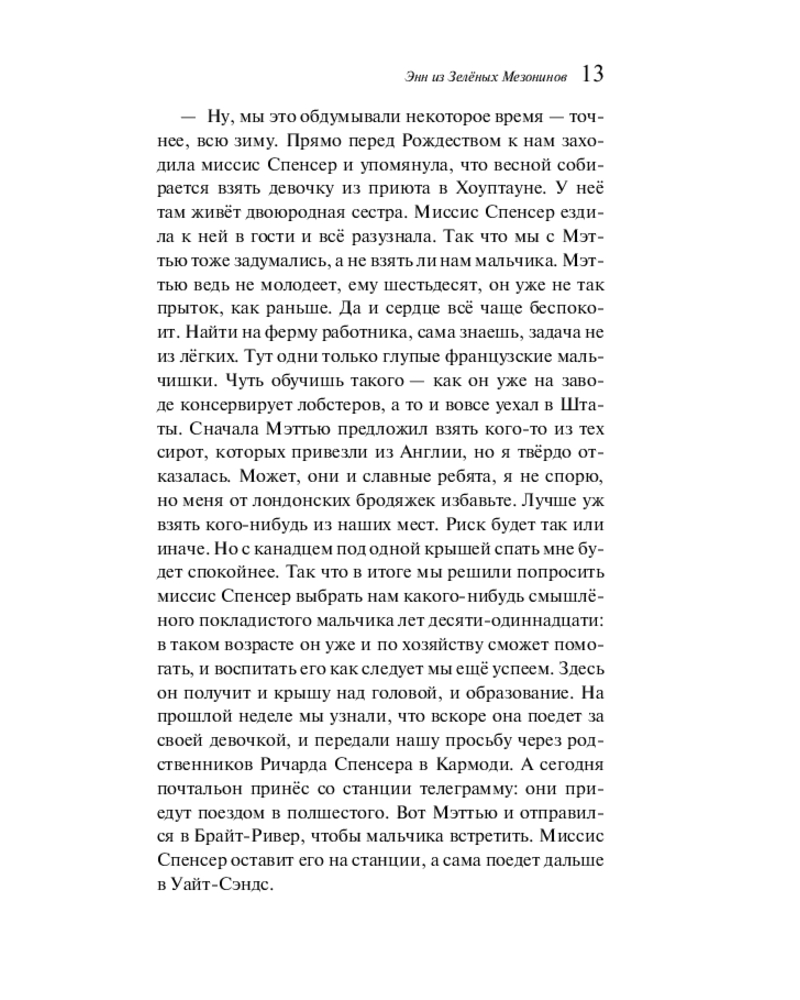 💳 Оплатить за товар можно при получении 🇰🇿 Есть бесплатная доставка по Казахстану от 1 дня 🎁 Копите бонусы с каждой покупки Серия: Магистраль. Главный тренд Когда рыжеволосая Энн Ширли приезжает на остров Принца Эдуарда, она уверена, что наконец нашла дом, о котором всегда мечтала. Энн — сирота, у которой не было детства, потому что и в приёмных семьях, и в приюте она работала наравне со взрослыми, никто не дарил ей тепла, её жизнь до сих пор была «кладбищем надежд». Но её новые приёмные родители — Мэтью и Марилла Касберты — в замешательстве, ведь они просили прислать к ним мальчика, чтобы он помогал им на ферме в Зелёных Мезонинах. Девочка кажется им поначалу странной, постоянно попадает в неприятности, но со временем неуёмный оптимизм, богатая фантазия, добродушие Энн покоряют их и жителей Авонлеи. |