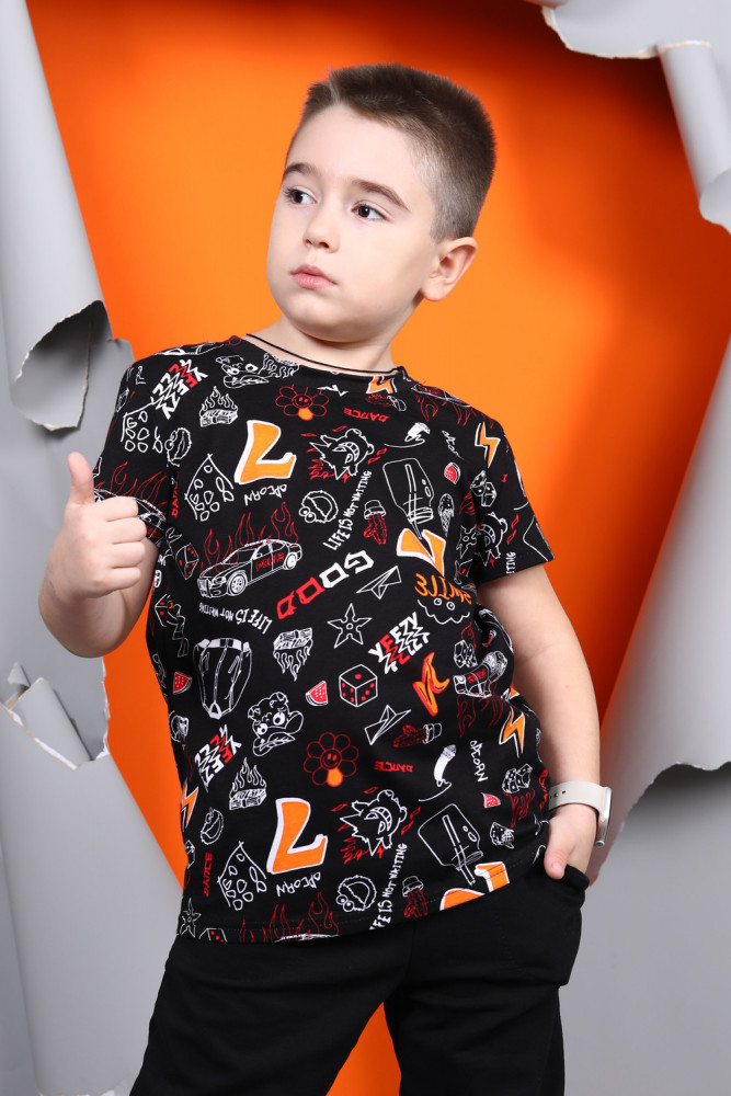 Футболка для мальчиков — практичная и стильная модель на каждый день. Изготовлена из мягкого, дышащего материала, приятного к телу и комфортного в носке. Удобный крой не сковывает движений. Легко сочетается с джинсами, шортами и спортивной одеждой.
