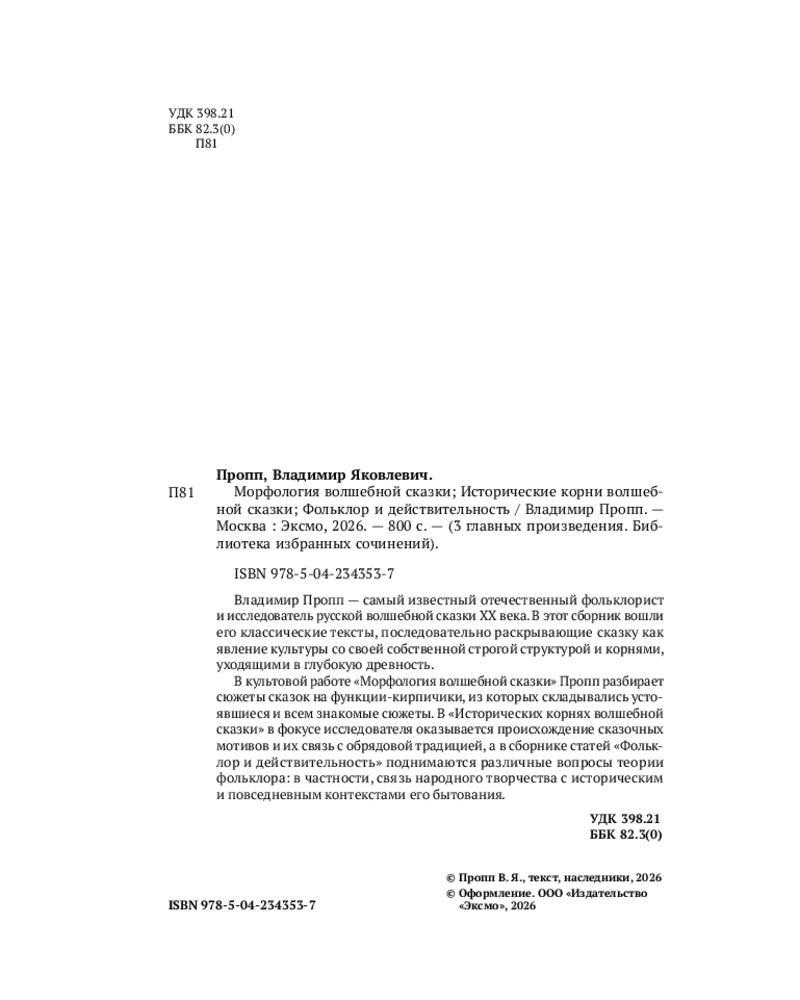 Морфология волшебной сказки. Исторические корни волшебной сказки. Фольклор и действительность-30% +43