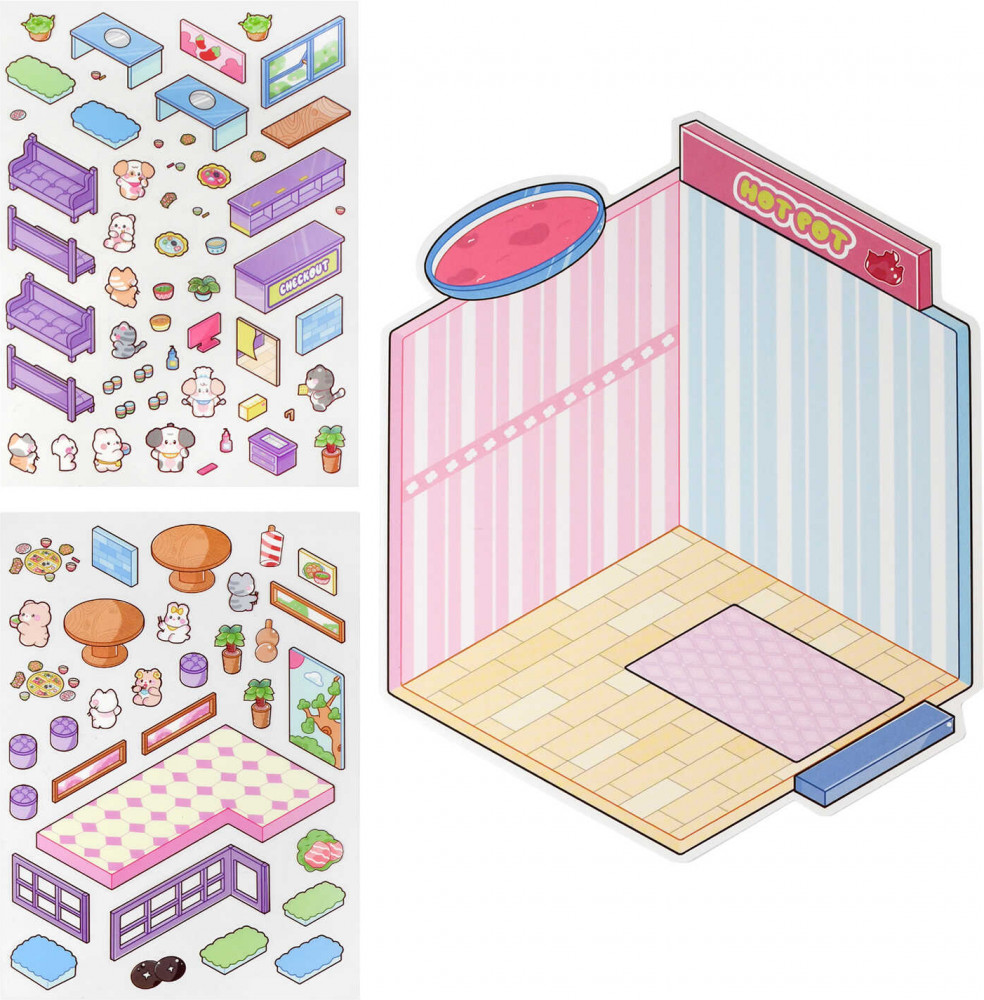 Феникс + Наклейки-румбокс для создания миниатюрных сцен «Ресторан Хот-пот»-25% +6