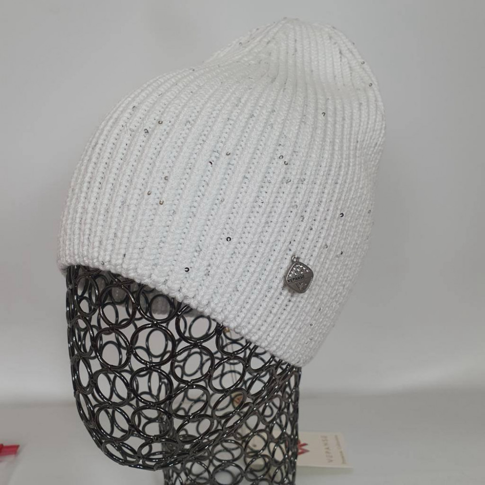 Vepanse Шапка женская с мелкими пайетками без отворота, одинарная вязка «Полли»