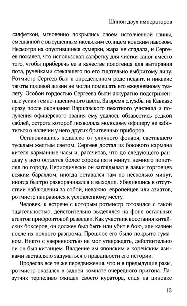 💳 Оплатить за товар можно при получении 🇰🇿 Есть бесплатная доставка по Казахстану от 1 дня 🎁 Копите бонусы с каждой покупки Маньчжурия, 1904 год. Ротмистр Сергеев, педант и профессионал, ведет смертельно опасную игру в сердце прифронтового города. Его противники — хитрые японцы, ненадежные китайские агенты и провокаторы, плетущие заговор в самом сердце Российской империи. Единственный, кому он может доверять, — таинственный лазутчик Ю, чье прошлое окутано мраком, а мотивы непонятны. Но кто он — ключ к спасению русской армии или гениальная ловушка японской контрразведки? От жарких улиц Маньчжурии до кабинетов Петербурга, где зреет революция, — это роман о долге и предательстве, о любви, рожденной в огне, и о войне, где главное сражение происходит в тени и где одного неверного шага достаточно, чтобы империя рухнула. |