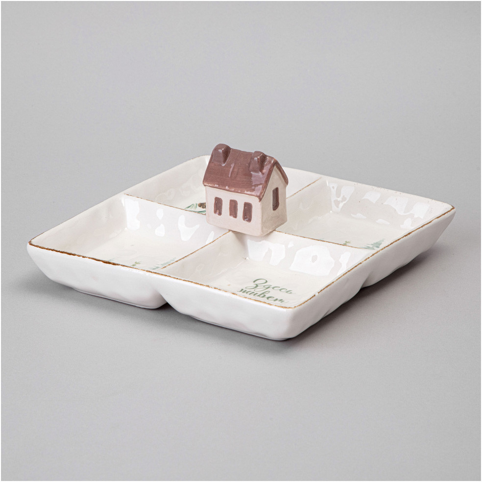 Менажница — это удобная емкость, которая экономит пространство на столе и делает сервировку эффектной и оригинальной. Главная задача сервировочной посуды — разгрузить стол и подать закуски красиво. На закусочном столе это холодные или горячие закуски, салаты, рыба, грибы; на чайном — конфеты, орешки, сладости. Изделия выполнены из керамики. Каждый предмет поможет сервировать стол, подчеркнет вкус и стиль хозяйки. Хороший подарок в любой дом! Посуда прошла сертификацию. Безопасна для контакта с пищевыми продуктами.