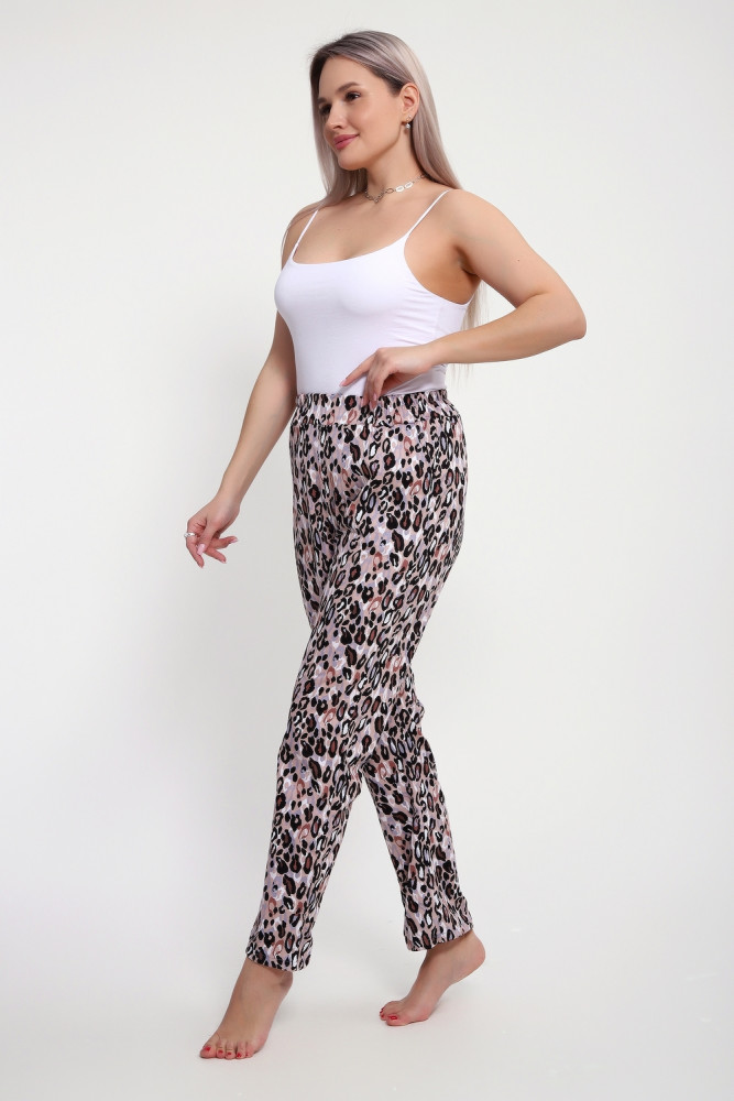 Брюки женские выполнены из кулирки 100% хлопок. Брюки имеют комфортную посадку, на поясе с резинкой, с карманами, прямые. Идеально подойдут как для дома, так и для прогулок и отдыха.