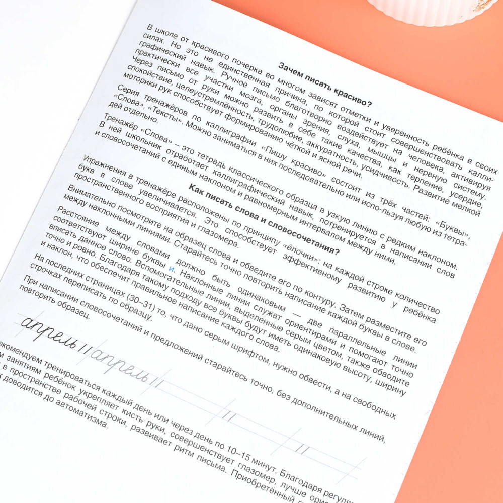 💳 Оплатить за товар можно при получении 🇰🇿 Есть бесплатная доставка по Казахстану от 1 дня 🎁 Копите бонусы с каждой покупки Серия: Уроки чистописания Тренажёр для письма «Уроки чистописания. Слова» — удобное пособие для обучения детей аккуратному и правильному письму. Формат 165×210 мм, содержит 16 листов из офсетной бумаги плотностью 100 г/м² с печатью в две краски, что облегчает освоение букв и написания слов. Обложка выполнена из мелованного картона плотностью 200 г/м², мягкий переплёт на двух скобах обеспечивает удобство использования и надёжную фиксацию листов. |