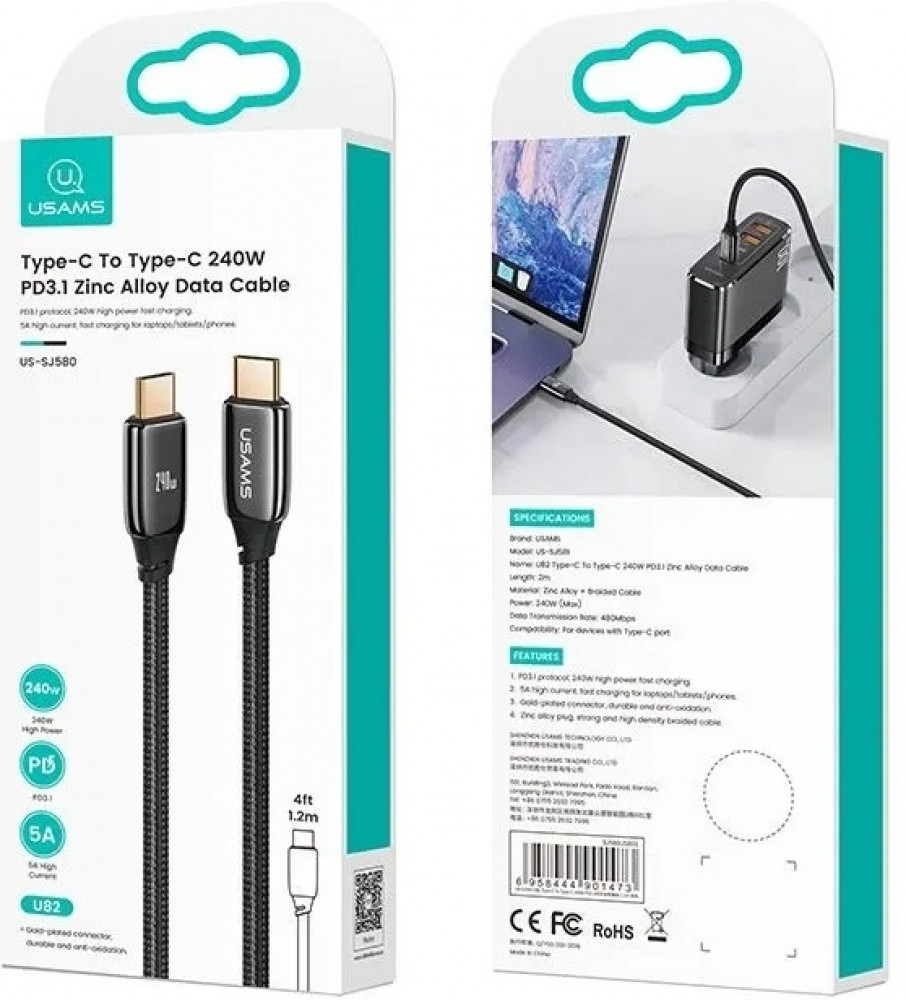 Usams Кабель USB TypeC (M U82 US-SJ581В данный момент этот товар отсутствует в продаже. Возможно, у нас найдется аналогичный или похожий товар здесь. Кабель USAMS U82 US-SJ581 длиной 2 метра предназначен для зарядки и передачи данных между устройствами с USB-C портами. Он поддерживает высокую выходную мощность до 240 Вт и ток до 5 А, что делает его подходящим для быстрой зарядки смартфонов, планшетов, ноутбуков и других гаджетов, совместимых с Power Delivery 3.1. Кабель обеспечивает передачу данных со скоростью до 480 Мбит/с, что позволяет быстро синхронизировать файлы между устройствами. Прочная структура с оплёткой из износостойкого материала и корпусом из цинкового сплава повышает долговечность при ежедневном использовании, а компактная длина 2 м обеспечивает удобство в домашних условиях, офисе или в путешествиях. |