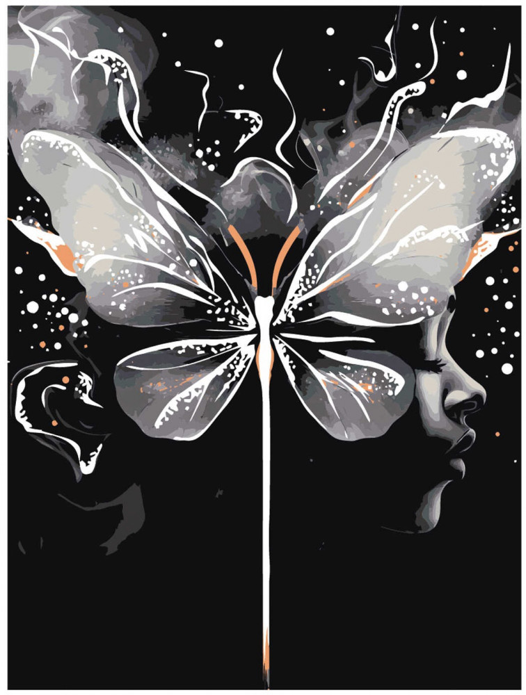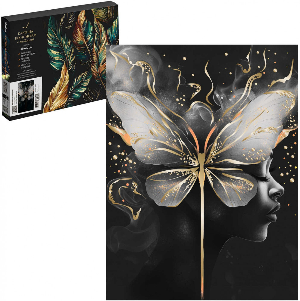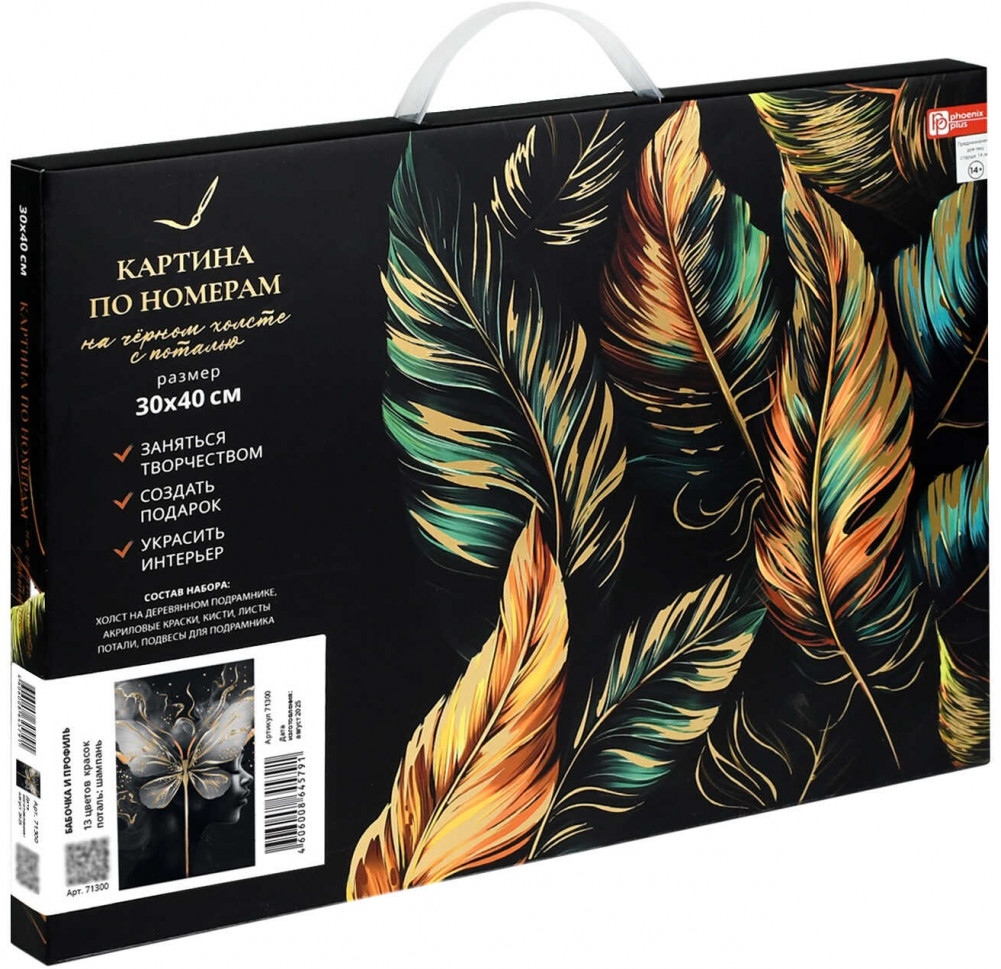 Феникс + Картина по номерам с поталью на черном холсте «Девушка с бабочкой»-35% +152