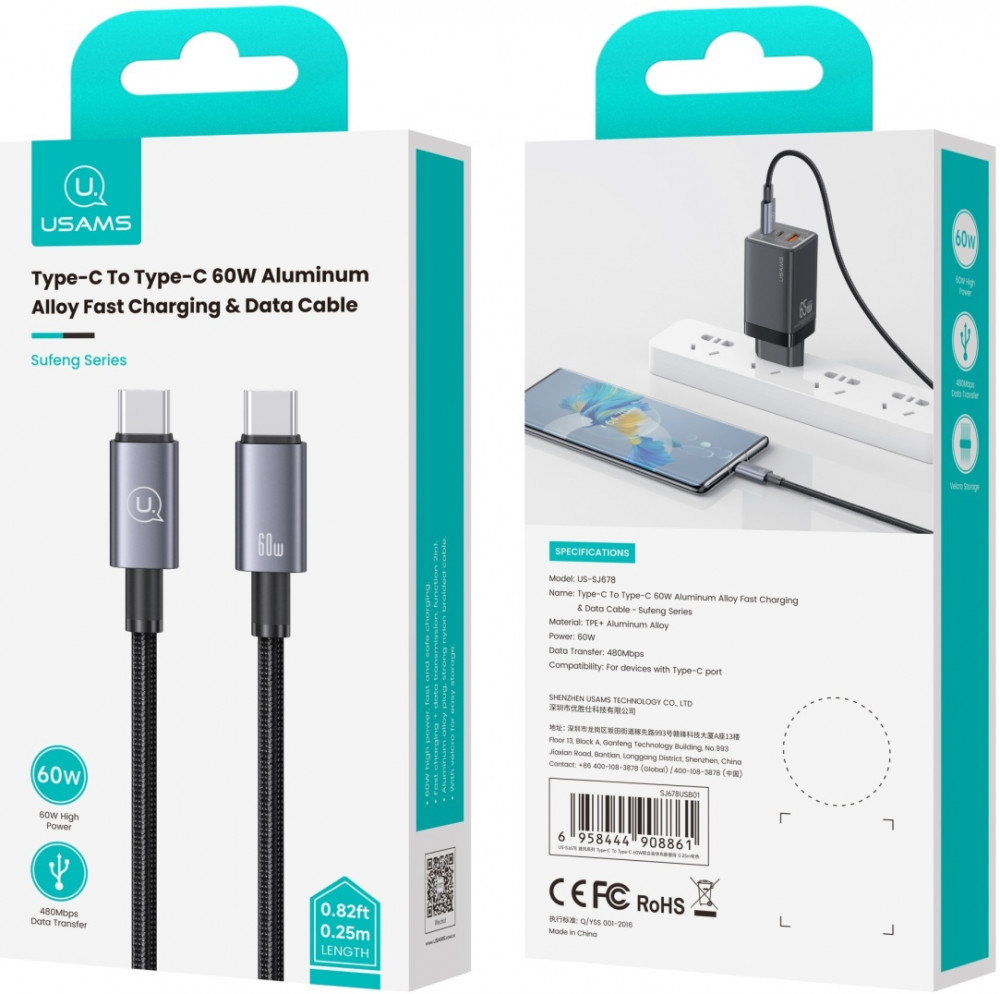 Usams Кабель US-SJ678 Sufeng Series Type-C - Type-C+15