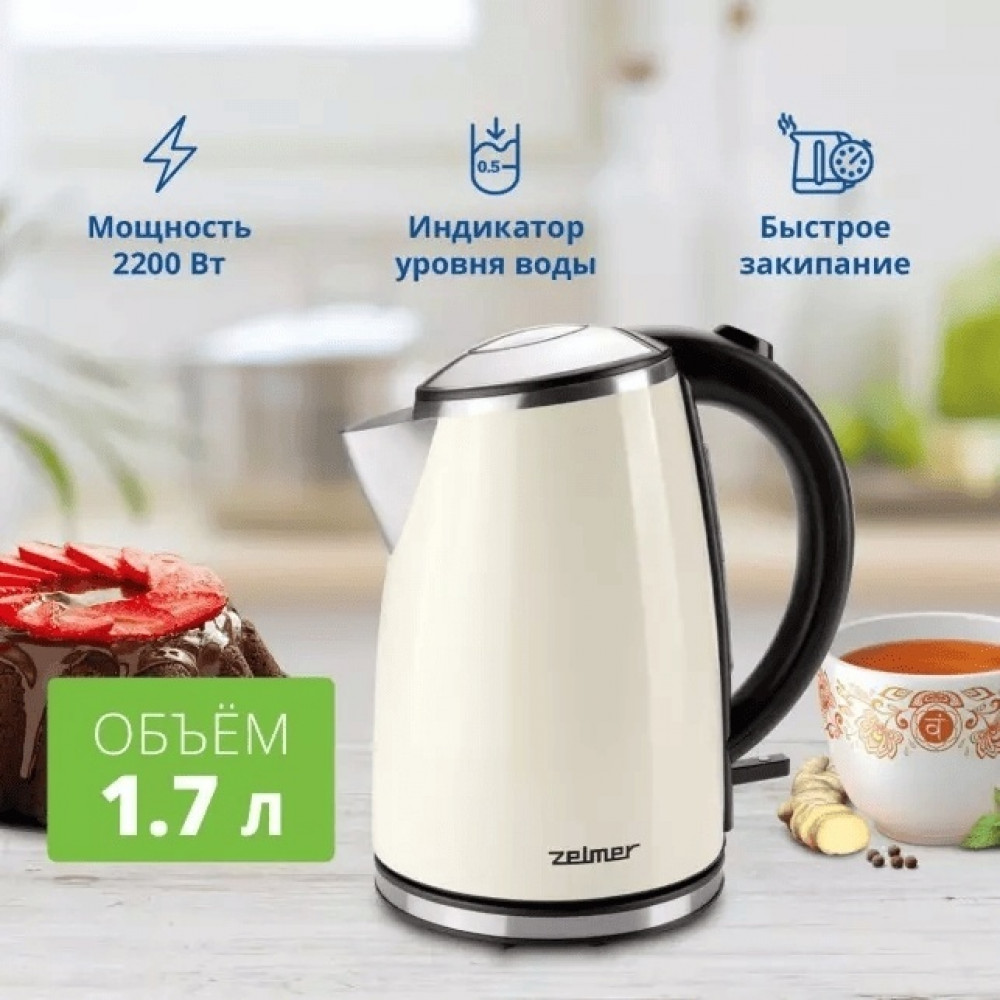 💳 Оплатить за товар можно при получении 🇰🇿 Есть бесплатная доставка по Казахстану от 1 дня 🎁 Копите бонусы с каждой покупки Zelmer ZCK1274 – классический электрочайник. Мощность нагревательного элемента составляет 2200 Вт, что обеспечивает быстрое кипячение воды. При закипании вы услышите звуковой сигнал. Чтобы наполнять чайник или доливать в него воду крышка открывается нажатием на кнопку, это удобно и безопасно. |