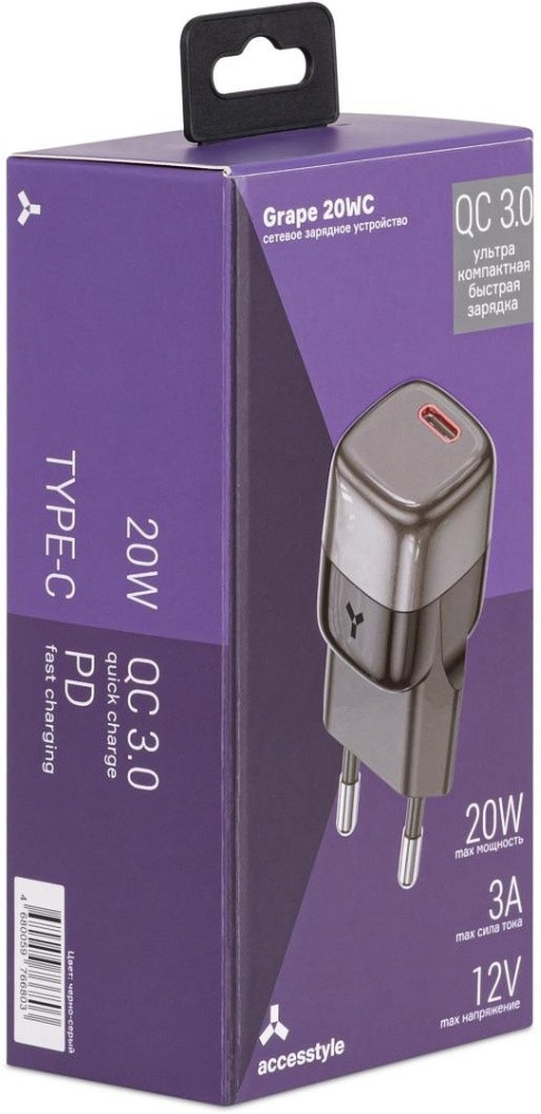 Accesstyle Сетевое зарядное устройство Grape 20WC Black Grey+120