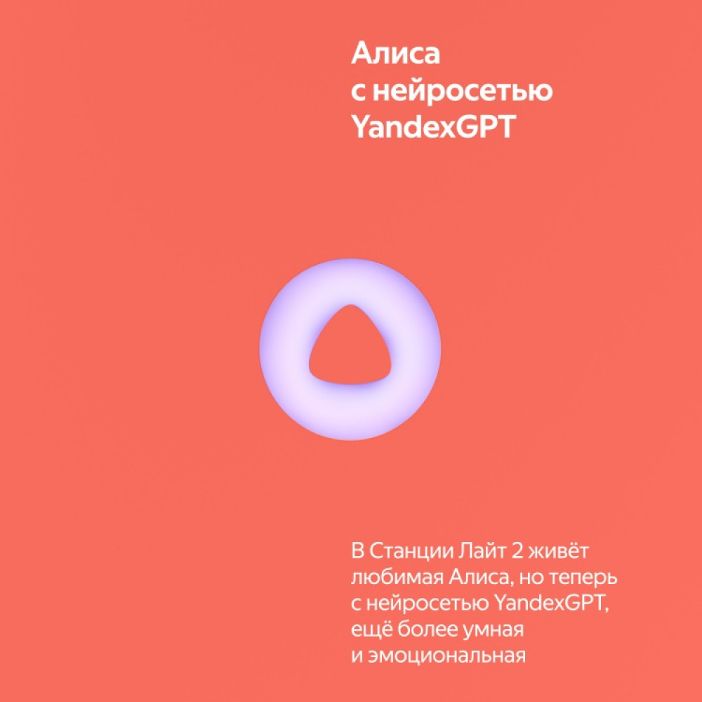 💳 Оплатить за товар можно при получении 🇰🇿 Есть бесплатная доставка по Казахстану от 1 дня 🎁 Копите бонусы с каждой покупки Умная колонка Яндекс.Станция Лайт 2 с нейросетью YandexGPT5 обладает большим функционалом и точностью ответов на запросы в отличие от модели ранней серии. С помощью LED-дисплея Алиса выражает эмоции: подмигивает, удивляется, улыбается, смущается и обижается. Динамики на 6 Вт выдают чистый и объемный звук. Функция автоподключения к знакомым сетям Wi-Fi позволяет брать колонку с собой на дачу или в гости. |