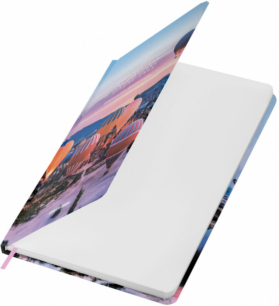 Внутренний блок состоит из 160 листов офсетной бумаги плотностью 60 г/м2. Обложка 7БЦ (твердый переплет с матовой пленкой) обеспечивает долговечность использования. Ежедневник снабжен резинкой-фиксатором, которая предотвращает его случайное открытие в сумке или портфеле.