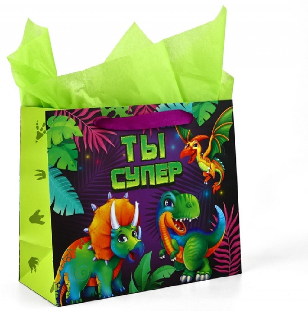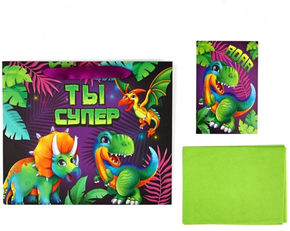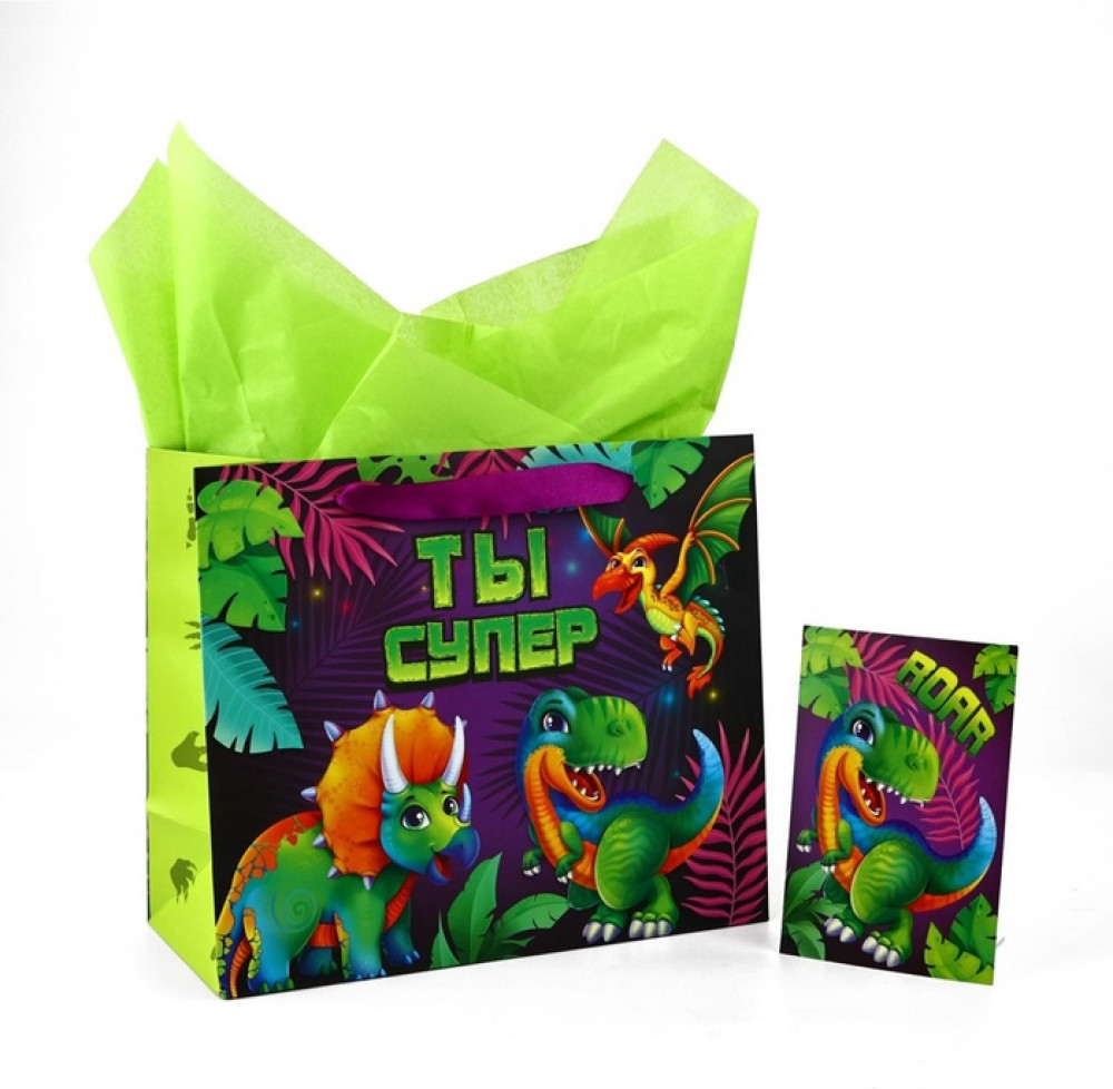 Дарите Счастье Пакет с открыткой «Динозаврики»-25% +8