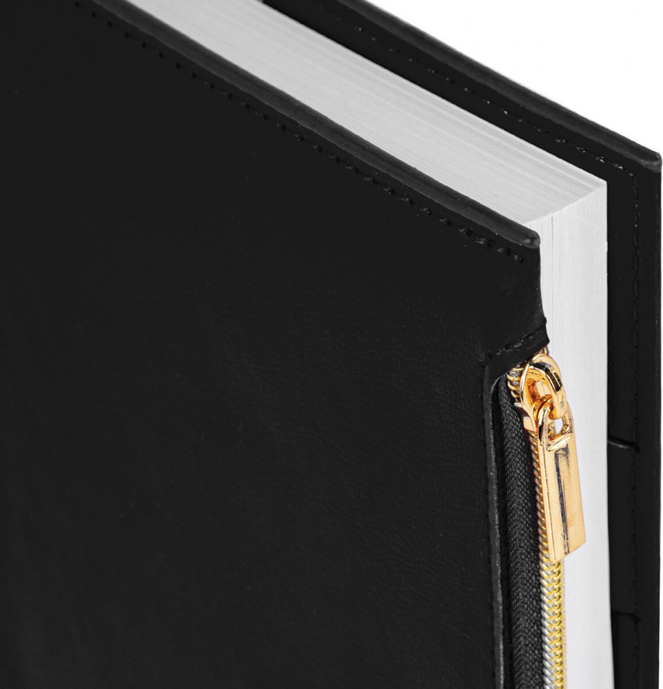 Съёмная гибкая обложка стилизована под гладкую кожу и подходит для горячего тиснения. Особенностью этого ежедневника являются большой карман на молнии и небольшие кармашки для визитных карточек на внутренней стороне обложки. Дополнением служат закладка-ляссе, с помощью которой можно быстро открыть нужную страницу, а также держатель для ручки для большего комфорта. Ежедневник снабжён обширным справочным материалом. В конце есть 7 страниц для записей и заметок.