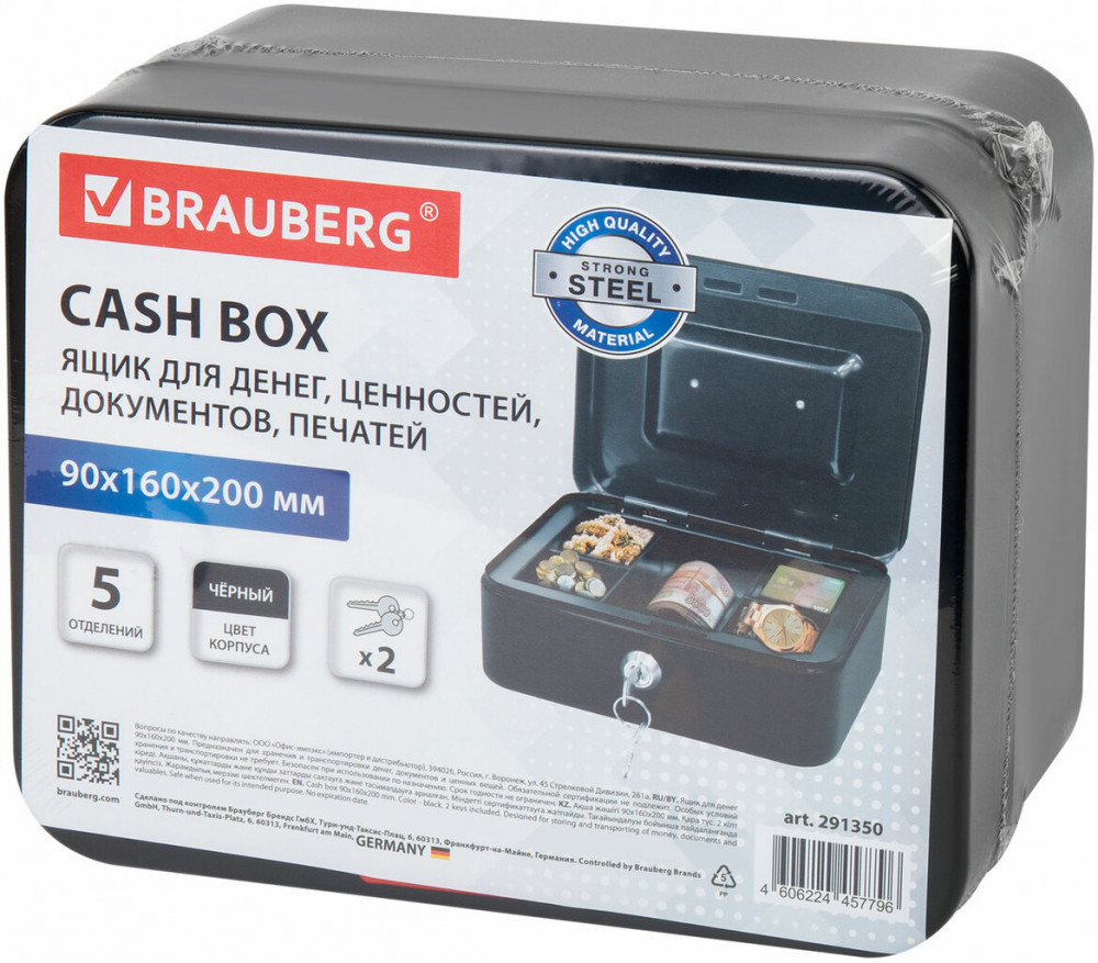 Ящик BRAUBERG предназначен для хранения и транспортировки денег, документов, ценных вещей и медикаментов. Защищает содержимое от постороннего доступа дома или в офисе. Отличное сочетание надёжности и вместительности.