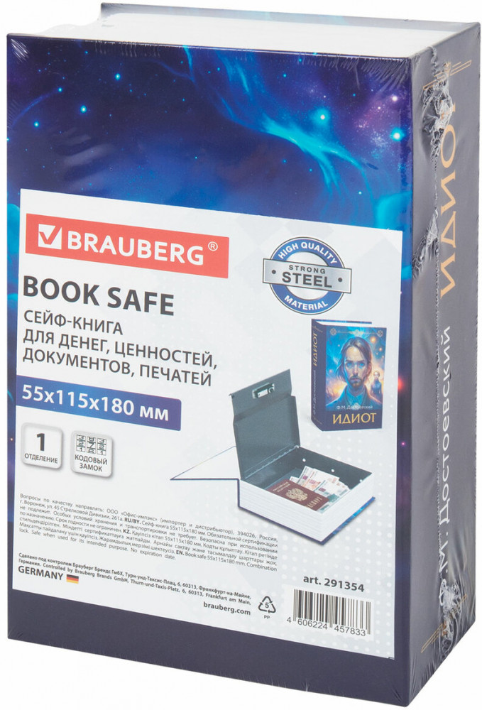 💳 Оплатить за товар можно при получении 🇰🇿 Есть бесплатная доставка по Казахстану от 1 дня 🎁 Копите бонусы с каждой покупки Сейф BRAUBERG из прочной стали с кодовым замком стилизован под книгу «Идиот» и обеспечивает надёжную защиту от несанкционированного доступа. Незаметный на книжной полке дома или в офисе, он станет отличным подарком для практичных людей. |