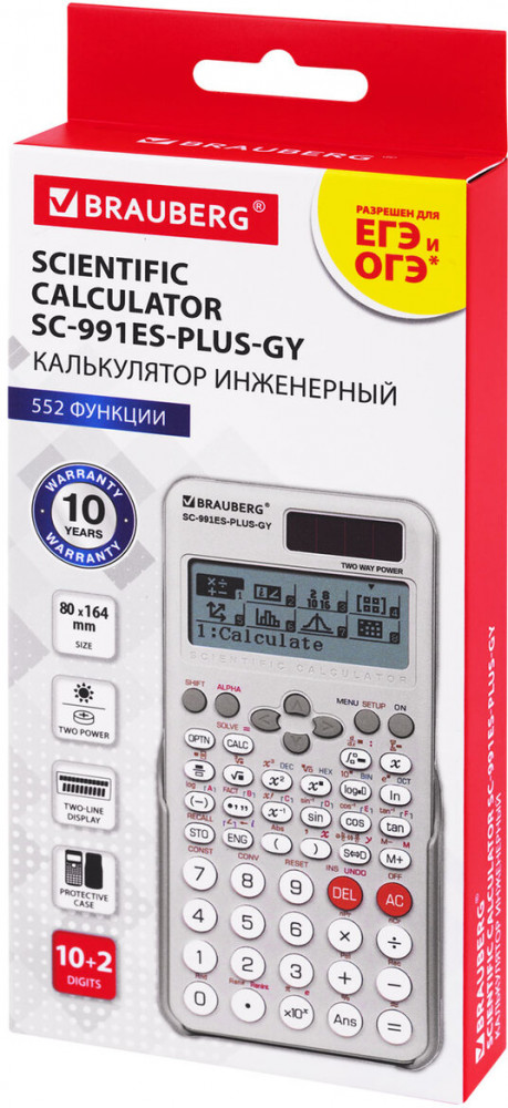💳 Оплатить за товар можно при получении 🇰🇿 Есть бесплатная доставка по Казахстану от 1 дня 🎁 Копите бонусы с каждой покупки Непрограммируемый инженерный калькулятор Brauberg SC-991ES-PLUS-GY выполняет все основные вычисления, которые понадобятся школьникам на экзаменах и контрольных работах. Сертифицирован для использования на ЕГЭ и ОГЭ по физике, химии, географии. 552 встроенные научные и статистические функции позволяют вычислять степени и корни, факториалы, логарифмы и антилогарифмы, интегралы и дифференциалы, комплексные числа, а также производить статистические расчеты и вычисления с прямыми и обратными гиперболическими и тригонометрическими функциями (в том числе в градусах, радианах и градах), вычисления с векторами, матрицами, распределениями и таблицами и решать уравнения, неравенства, пропорции. |