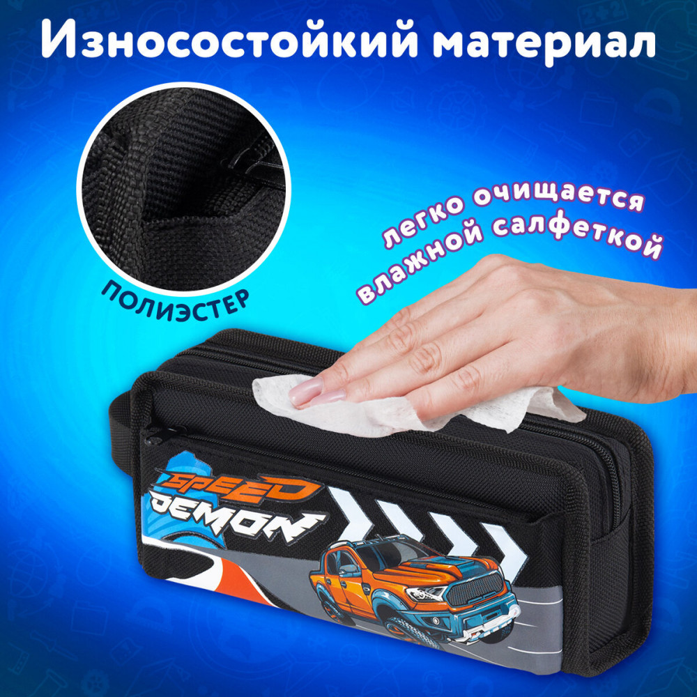 💳 Оплатить за товар можно при получении 🇰🇿 Есть бесплатная доставка по Казахстану от 1 дня 🎁 Копите бонусы с каждой покупки Серия: Юниор Пенал Юнландия Юниор «Speed demon» с двумя отделениями предназначен для хранения школьных канцелярских принадлежностей. Застегивается на молнию с металлическим бегунком. Вмещает до 50 предметов. Выполнен из прочного полиэстера, приятного на ощупь. Внутри пенала одно отделение с застежкой-молнией, оснащенной металлическим бегунком. Снаружи дополнительное отделение — карман с застежкой на молнии. Удобная ручка-петля сбоку для переноски. Яркая печать уникального дизайна на переднем кармашке пенала. Компактный размер 21×8×6 см делает пенал удобным для ежедневного использования. Идеально подходит для хранения ручек, карандашей, ластиков и других канцелярских принадлежностей. Упакован в прозрачный полиэтиленовый пакет с европодвесом, который сохранит качество и товарный вид при хранении и транспортировке. |