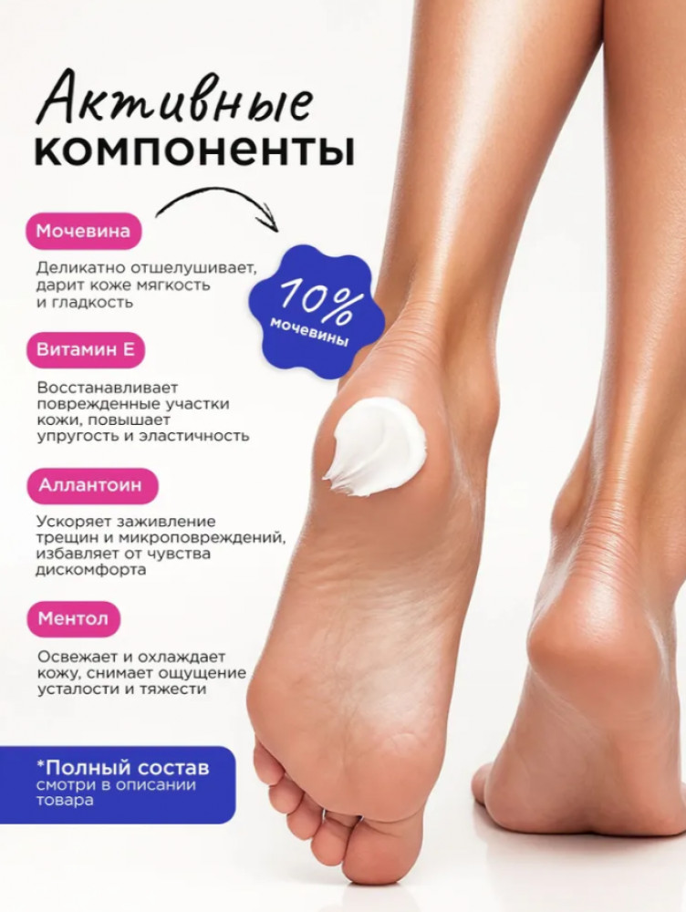 Крем для ног от грибкаКрем-баттер для ногОхлаждающий крем для ногОсвежающий крем для ногКрем для ног от запахаКрем для ног против трещинКрем-воск для ногНабор для ухода за кожей ногАнтибактериальный крем для ногКрем от мозолей на ногахКрем для пятокЗаживляющий крем для ног Защитный крем для ногКрем для ног с мочевинойКрем для ног увлажняющий