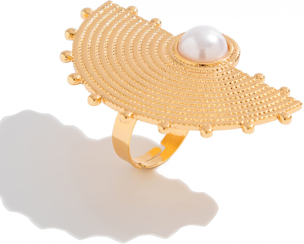 Кольцо женское безразмерное «Веер с жемчугом»