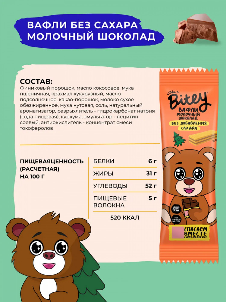 Take a Bitey Вафли детские без сахара «Молочный шоколад»