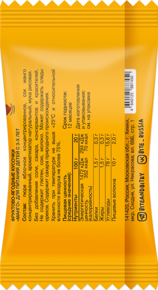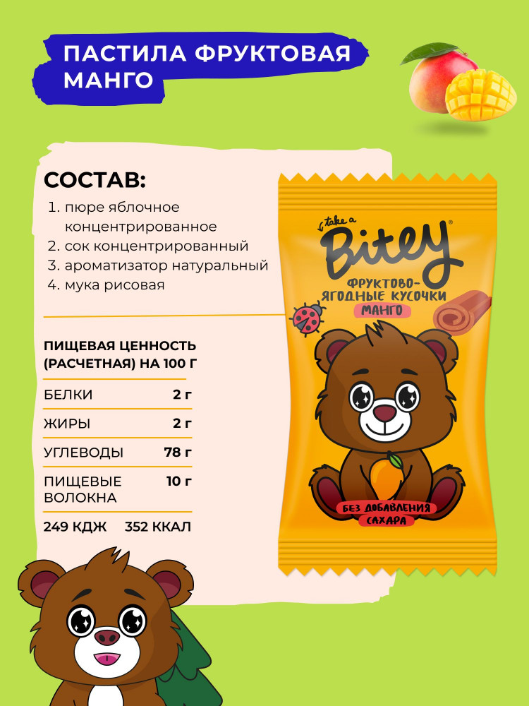 Take a Bitey Пастила детская фруктовая без сахара Мини «Манго»