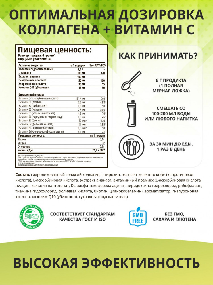 Коллаген в порошке упакован в банку и фирменную коробку. Такой продукт отлично подойдет для подарка. Напиток имеет приятный освежающий вкус. Прием коллагена станет самым любимым полезным утренним ритуалом. Витаминный комплекс способствует полному усвоению коллагена, поддерживает сердечно-сосудистую и нервную систему. Регулярный прием БАД укрепит иммунитет и улучшит физическое состояние организма.