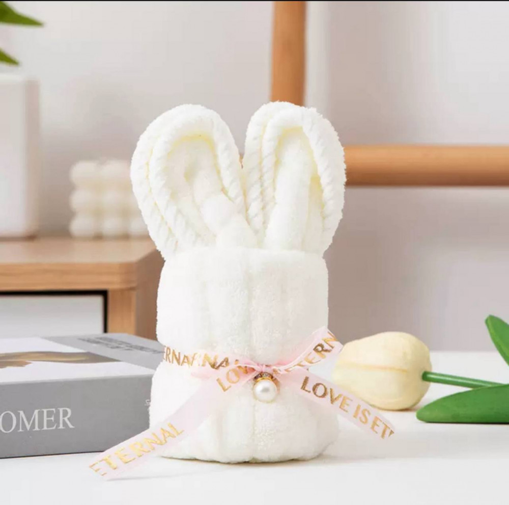 Очаровательное мягкое полотенце, искусно сложенное в форме милого зайчика с длинными ушками. Этот аксессуар станет идеальным дополнением к интерьеру ванной комнаты или кухни, а также чудесным самостоятельным подарком. Полотенце декорировано атласной лентой с надписью «Love is eternal» и изящной бусиной под жемчуг. Изготовлено из высококачественной микрофибры, которая отличается невероятной мягкостью, моментально впитывает влагу и быстро сохнет. Компактный размер делает его удобным для использования в качестве полотенца для рук или лица.