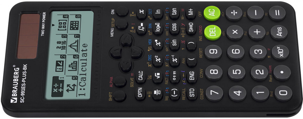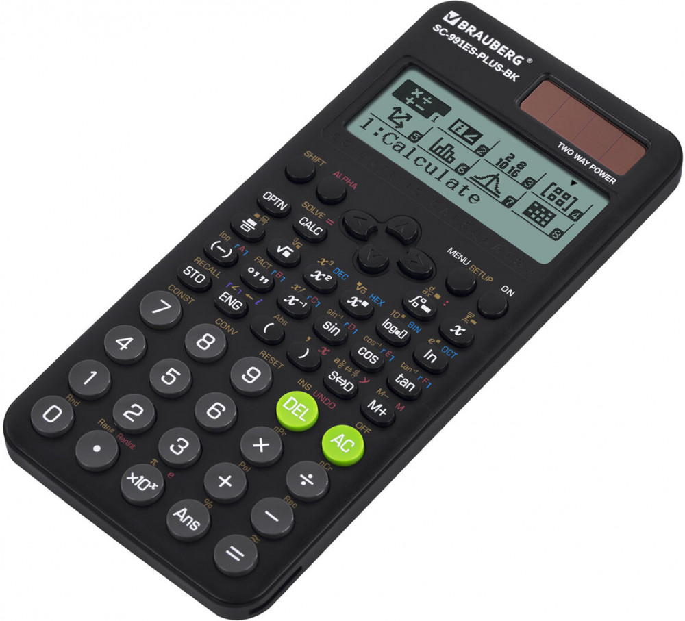В данный момент этот товар отсутствует в продаже. Возможно, у нас найдется аналогичный или похожий товар здесь. Непрограммируемый инженерный калькулятор BRAUBERG SC-991ES-PLUS-BK выполняет все основные вычисления, которые понадобятся школьникам на экзаменах и контрольных работах. Сертифицирован для использования на ЕГЭ и ОГЭ по физике, химии, географии.