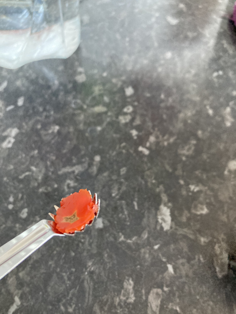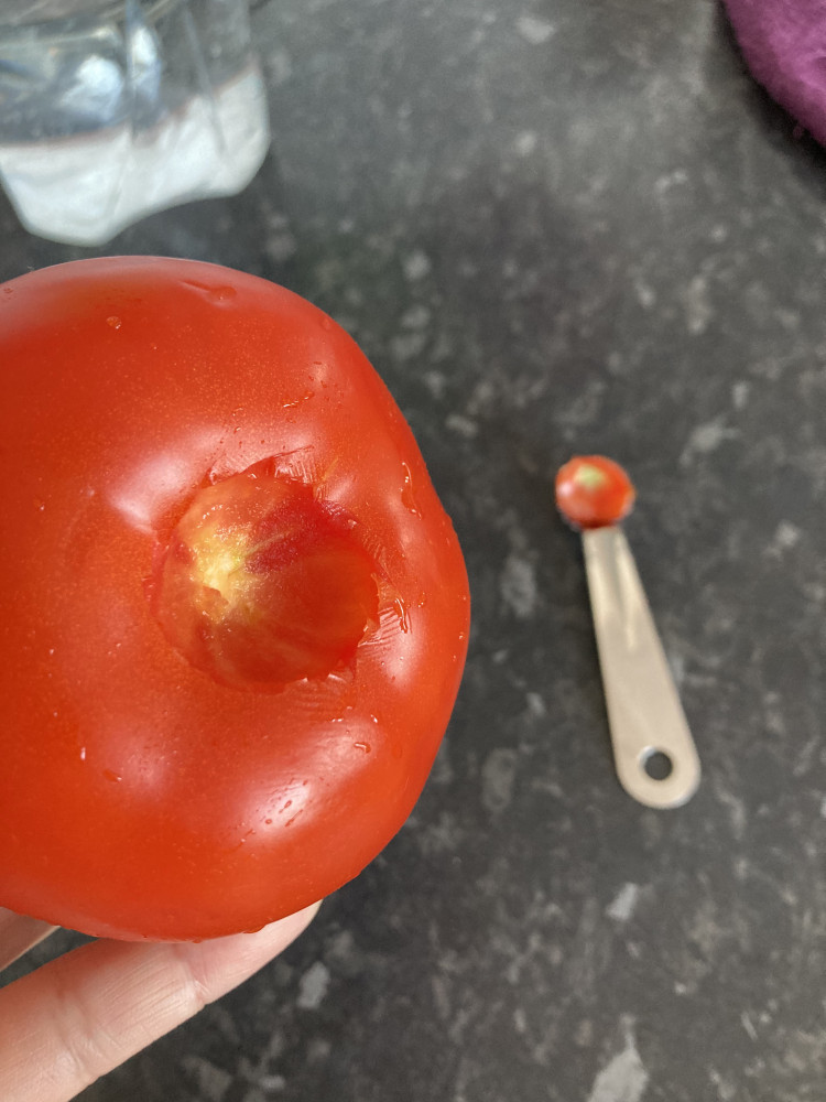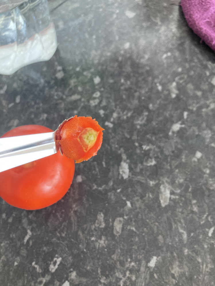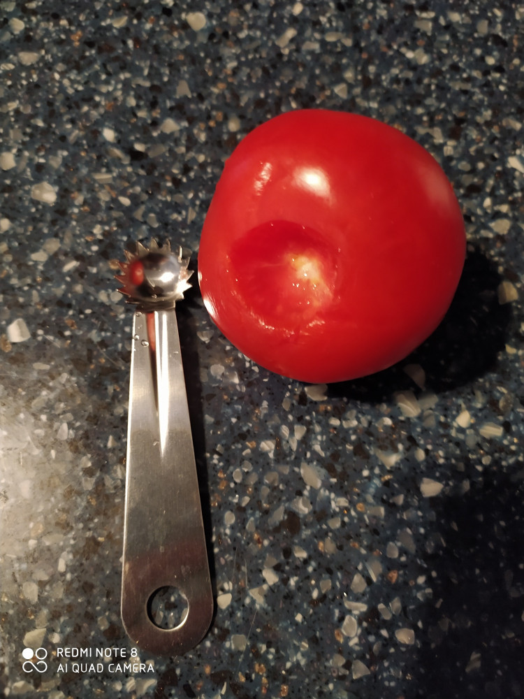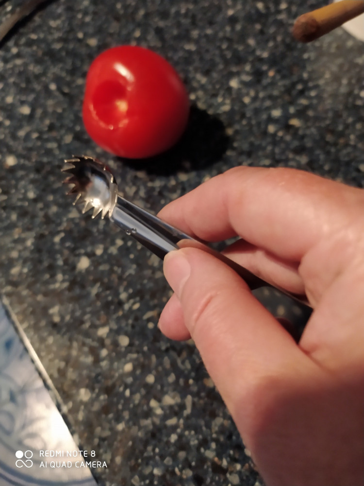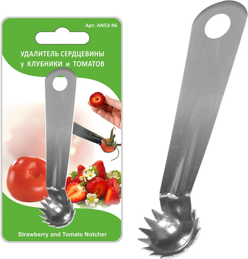 Очень удобный маленький инструмент, легко и просто удаляет сердцевины что в томатах, что в клубнике, намного упрощает процесс очистки.