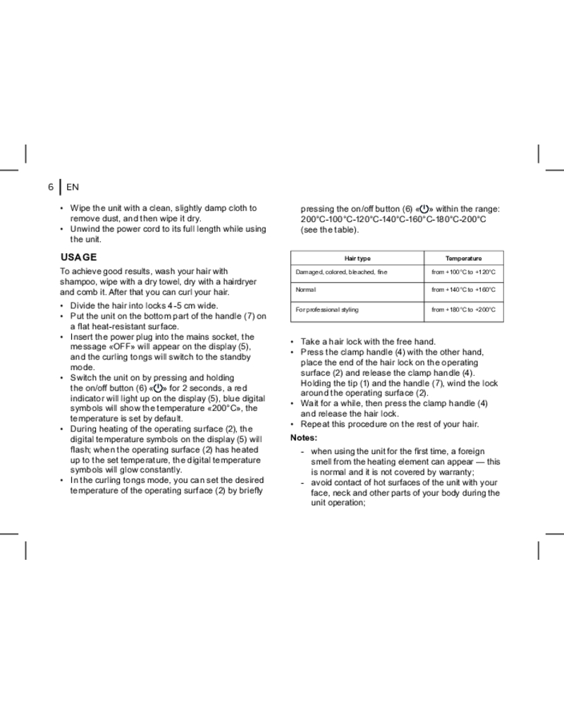 • 6 температурных режимов (100—200°C) — для любого типа волос;