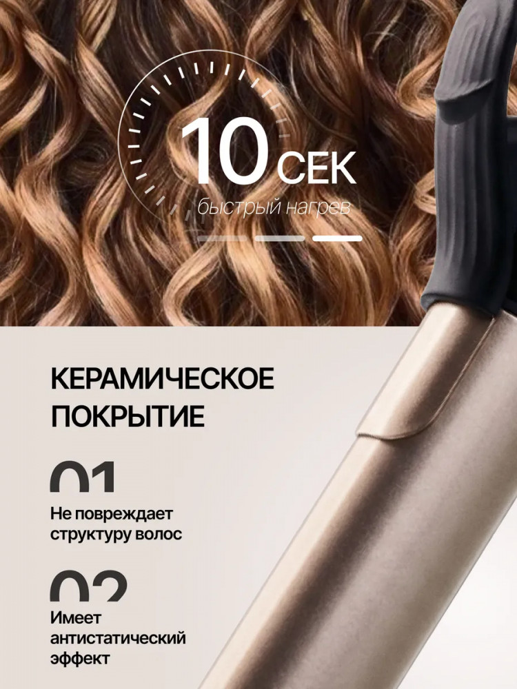 • PTC Heating — умный нагрев для здоровья волос: эта технология обеспечивает быстрый нагрев до выбранной температуры и ее точную стабилизацию в процессе работы. Ваши волосы не страдают от перегрева, сохраняют влагу, силу и естественный блеск. Больше никаких пересушенных кончиков и неприятного запаха гари;