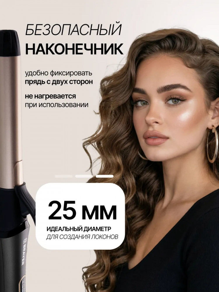 • классический диаметр 25 мм: универсальный размер для создания модных голливудских волн, мягких рассыпчатых локонов, упругих спиралек или игривых завитков на кончиках. Подходит для большинства длин волос — от плеч и ниже;